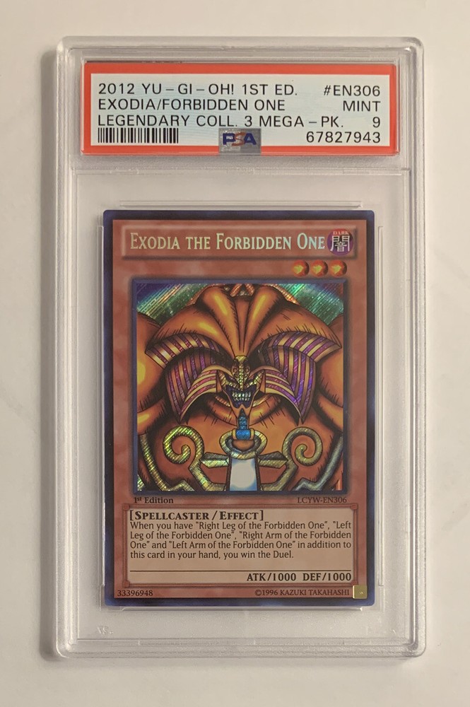 For any serious Yu-Gi-Oh! collector, this PSA 9 graded 1st Edition Exodia Secret Rare is an absolute gem. The holo finish pops beautifully, and the near-mint condition makes it a standout piece. As one of the most iconic cards in the game, owning this legendary LCYW-EN306 feels like holding a piece of TCG history. A must-have for fans who appreciate rarity and nostalgia!