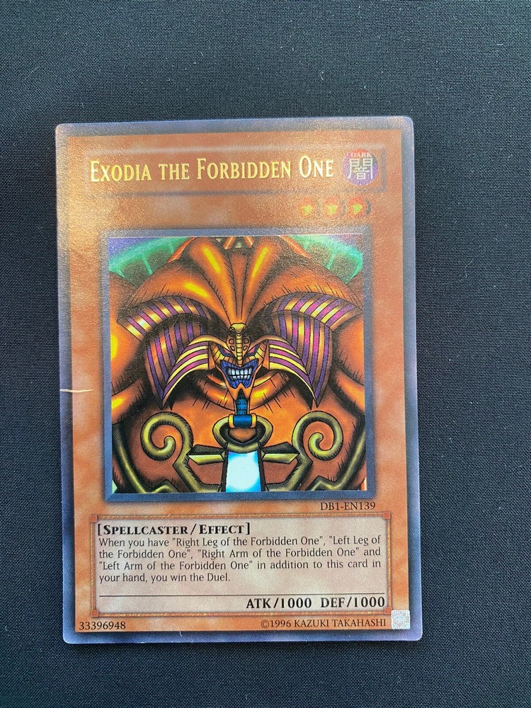 Please judge the condition of the card based on the pictures. This rare and highly sought-after card is a must-have for any serious collector of Yu-Gi-Oh! TCG cards. The Exodia the Forbidden One card, with the DB1-EN139 number, is a powerful addition to any deck and is sure to impress both experienced players and beginners alike. Featuring stunning artwork and powerful abilities, this card is a true gem in the world of collectible card games. Whether you're a fan of the Yu-Gi-Oh! TCG or simply love collecting rare cards, Exodia the Forbidden One is an absolute must-have. Don't miss out on the chance to add this incredible card to your collection today!