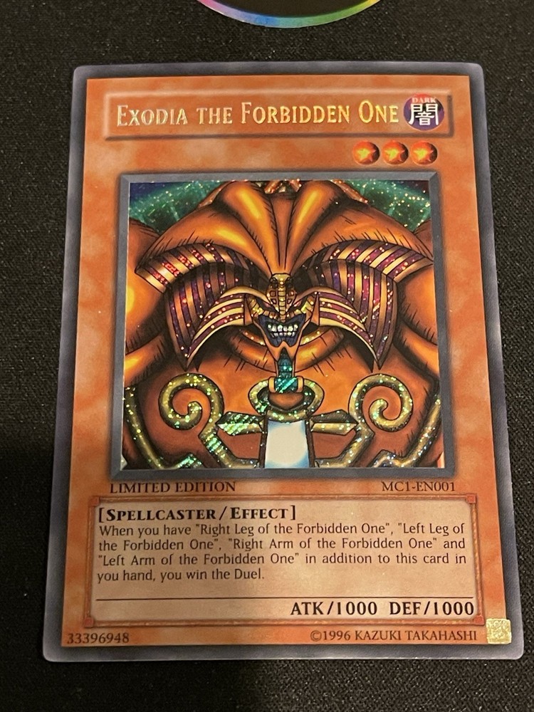 This limited edition Secret Rare card from the Yu-Gi-Oh! TCG is a must-have for any serious collector. Featuring the iconic Exodia the Forbidden One, this card is sure to be a valuable addition to any collection. With its rarity and limited availability, this card is a highly sought-after item among fans of the game. Whether you're a seasoned player or a collector, this card is a must-have for any Yu-Gi-Oh! TCG fan. Its unique features and rare availability make it a valuable and special item that is sure to stand out in any collection. Don't miss your chance to add this limited edition Secret Rare card to your collection today!