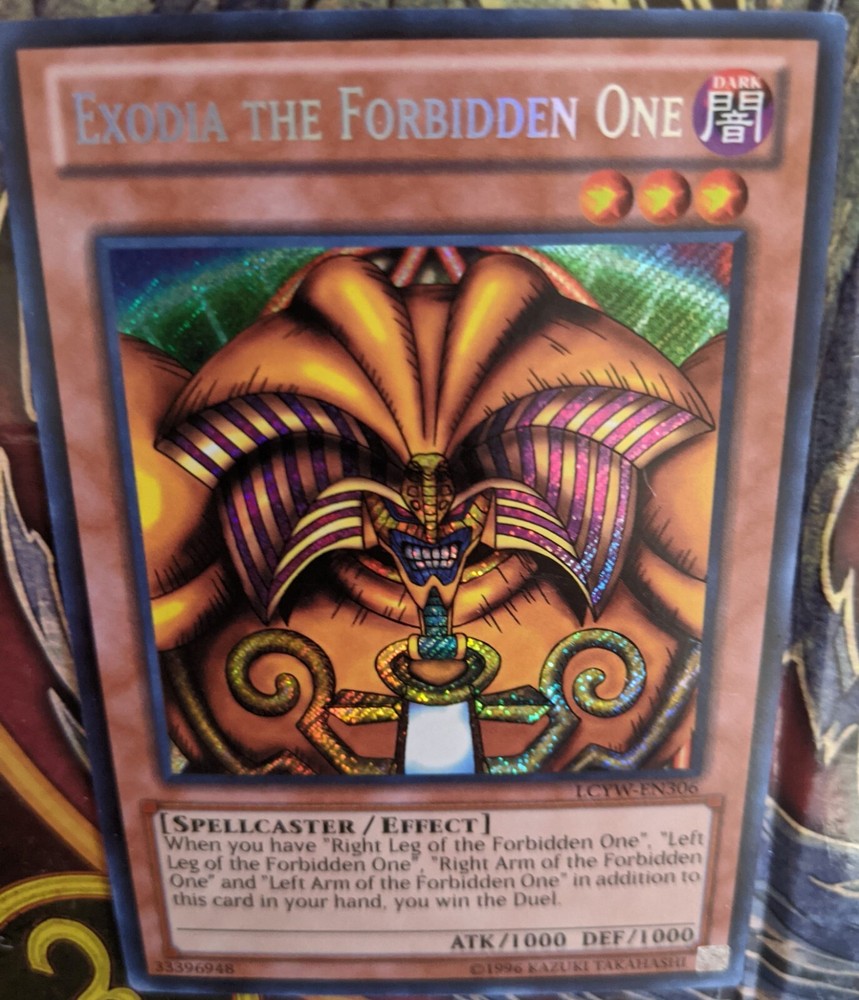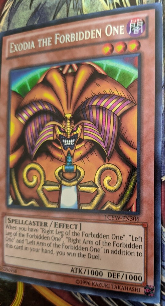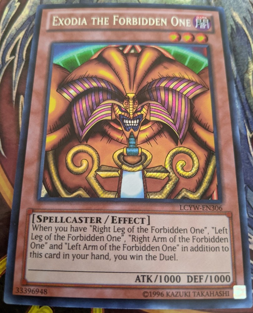 Item description: Yugioh Exodia the Forbidden One LCYW-EN306 Secret Rare Unlimited Yugi's World 1 single card Condition: See Photos Shipping: Shipping via USPS w/tracking Please allow 7-14 days shipping/handling time Item will be shipped in a larger envelope w/plenty of packaging material to secure item Due to increased shipping cost, which I cover for all my items I can only ship within the continental U.S. (sorry HI & AK) Contact me if you would like to cover shipping outside the continental U.S. Combined Shipping: We do offer combined shipping! Please contact for further details or add multiple items to your cart and "Request Total". Terms and Conditions: If you have any questions please email us before purchasing. Emails may take up to 48 Hours before they are answered. Return Policy: Please contact before you return the item. Returns are accepted within 30 days of when the item was shipped. Buyer pays for return shipping. Refund for item only, not shipping. Returned item must be returned in condition it was sent as seen it posted photos. As seller pays for shipping & handling cost, it will be deducted from refund of returned items. Payment Terms: Payment required within 7 days after this auction ends. After 10 days, we will open a case with eBay. Taxes are automatically added by eBay. Only purchase if you intend on paying! Thanks for looking!