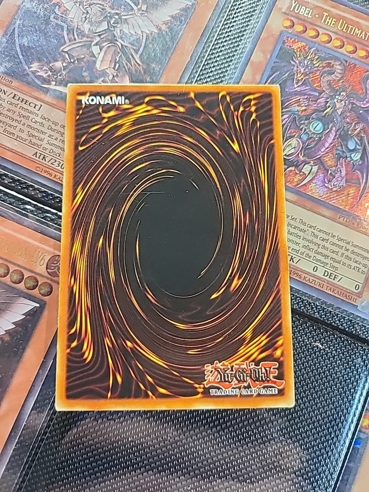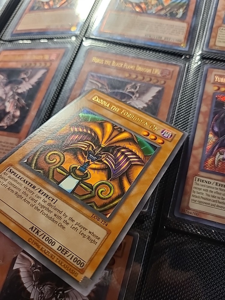 This is a rare and highly sought-after Yu-Gi-Oh! card called Exodia the Forbidden One, from the Legend of Blue-Eyes White Dragon set. It is an ultra rare card with unlimited edition features, making it a must-have for any serious collector or player of the game. The card is in excellent condition and is sure to be a valuable addition to any collection.