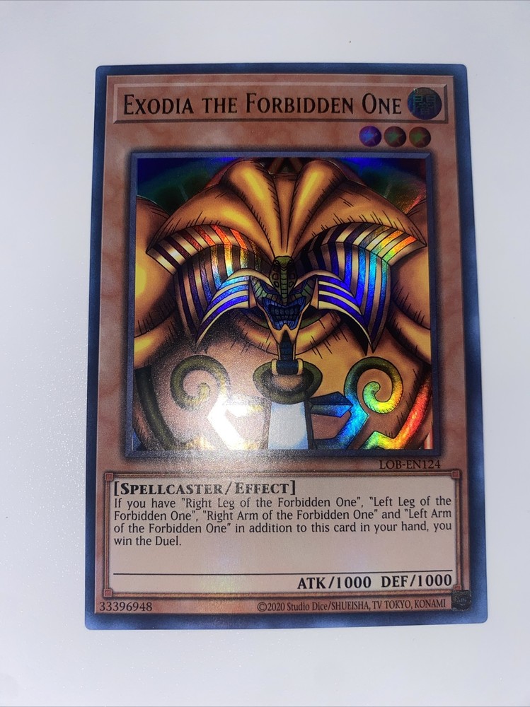 Yugioh Exodia the Forbidden One LOB-EN124 Ultra Rare MINT! PACK FRESH! Please see pictures for condition. Don’t hesitate to reach out if you have any questions or concerns. No lowball offers please. All my cards are 1000% authentic. See my other items for more amazing Pokemon and Yugioh cards!