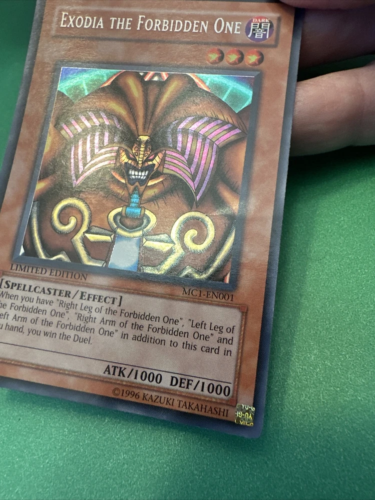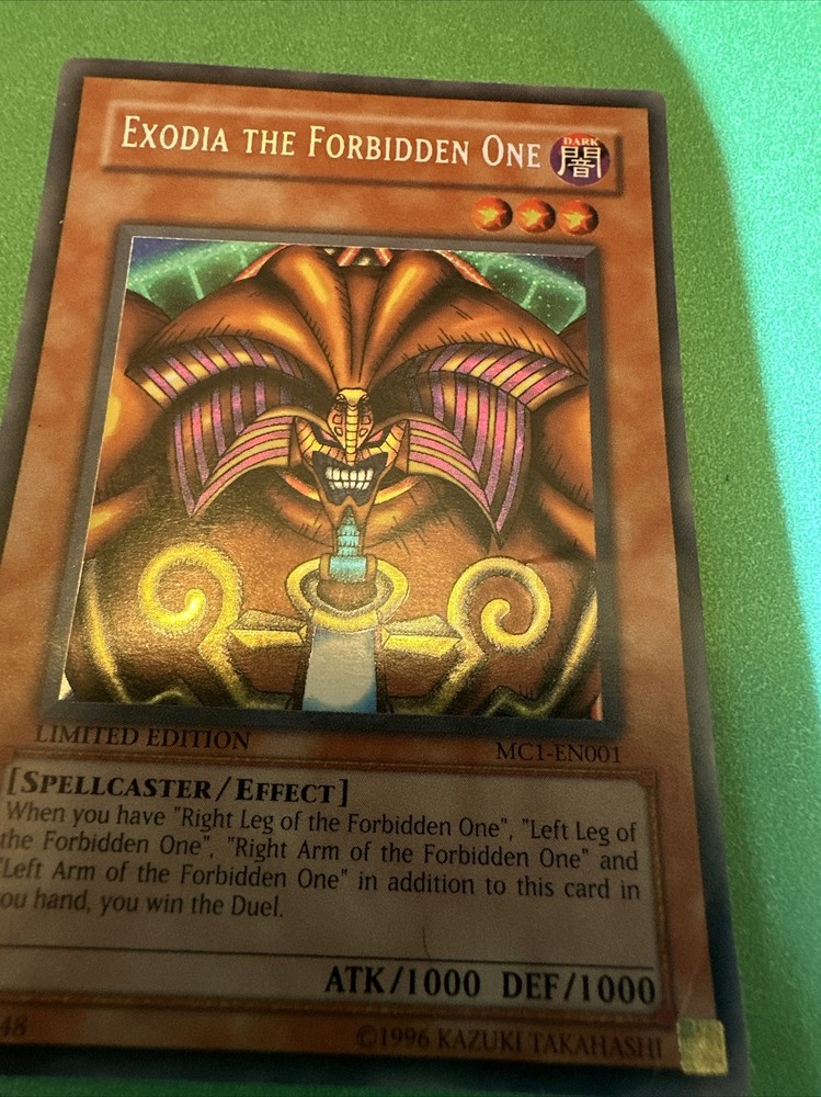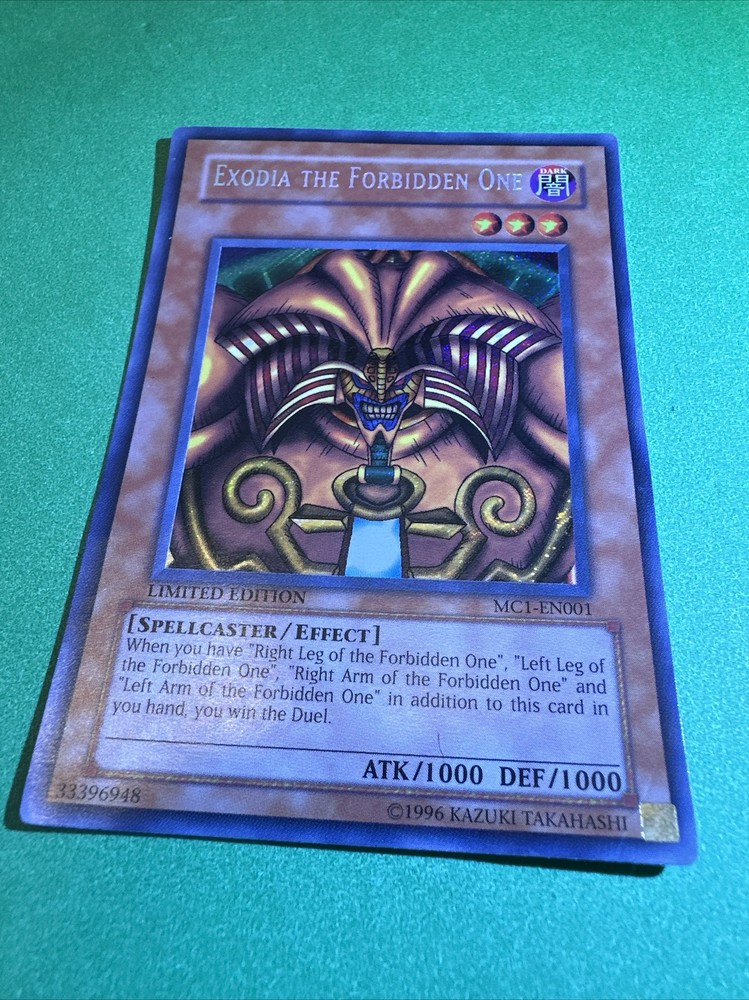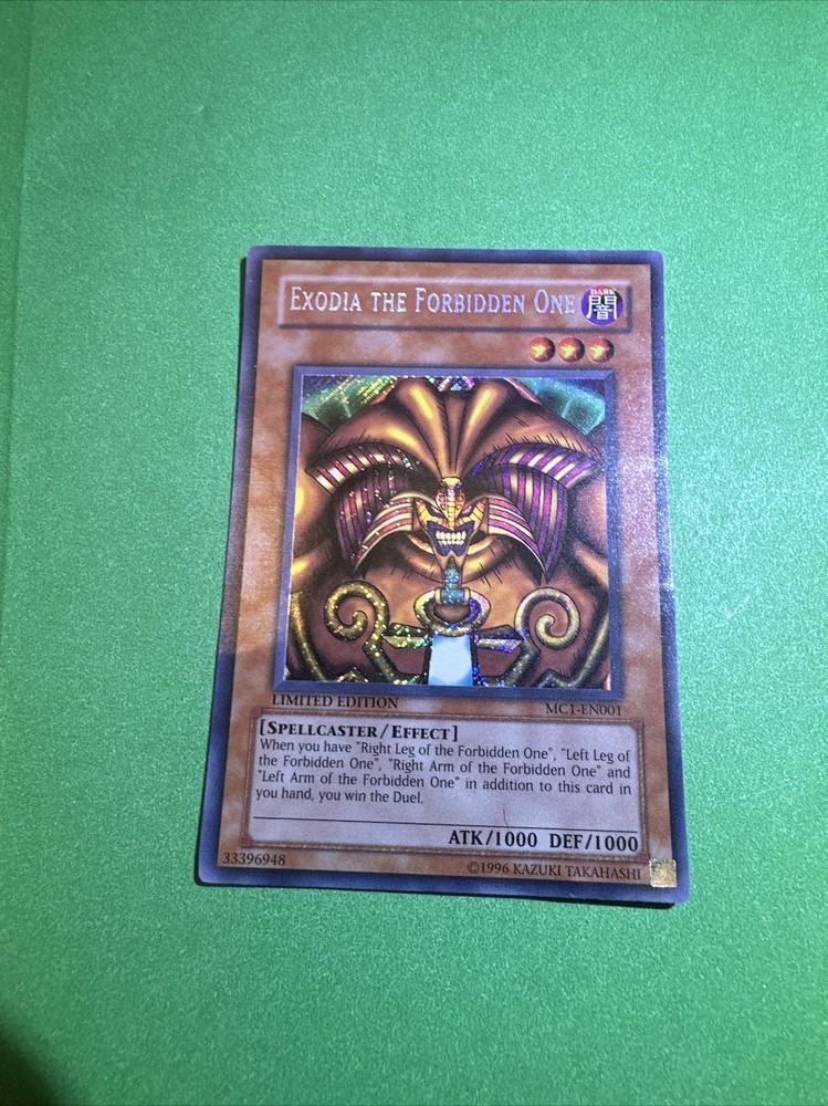 There are some minor creases that I did not notice until I took it out of its sleeve. This exclusive Yu-Gi-Oh! TCG card features the powerful Exodia the Forbidden One. With its Prismatic Secret Rare rarity and Dark color attribute, this card is a must-have for any collector. Its normal card type and inclusion in the Yu-Gi-Oh! Dark Duel Stories Promotional Cards set make it a highly sought-after item. Perfect for fans of the Yu-Gi-Oh! franchise, this MC1 individual card is sure to impress. The card name is also prominently displayed, making it easy to identify. Don't miss out on adding this Exodia card to your collection!