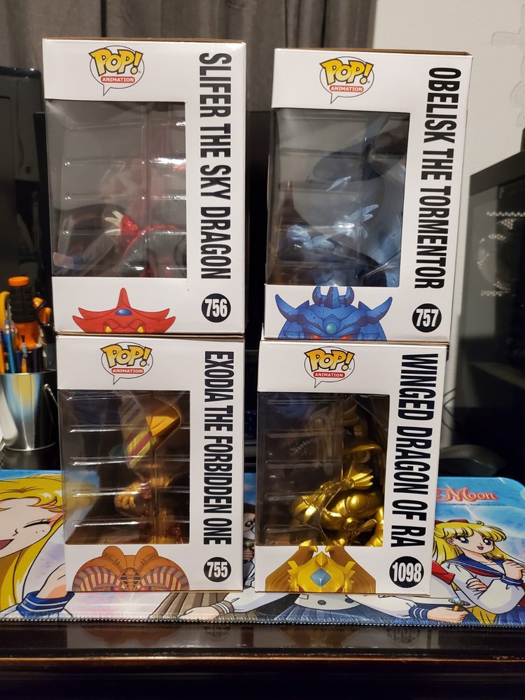 Yugioh Funko Pop! Egyptian God Lot Of 4 Obelisk, Slifer, Wing Dragon Ra, Exodia These pop have been in my collection for a long time. I have kept them in fantastic condition. I will ship fast to the b...