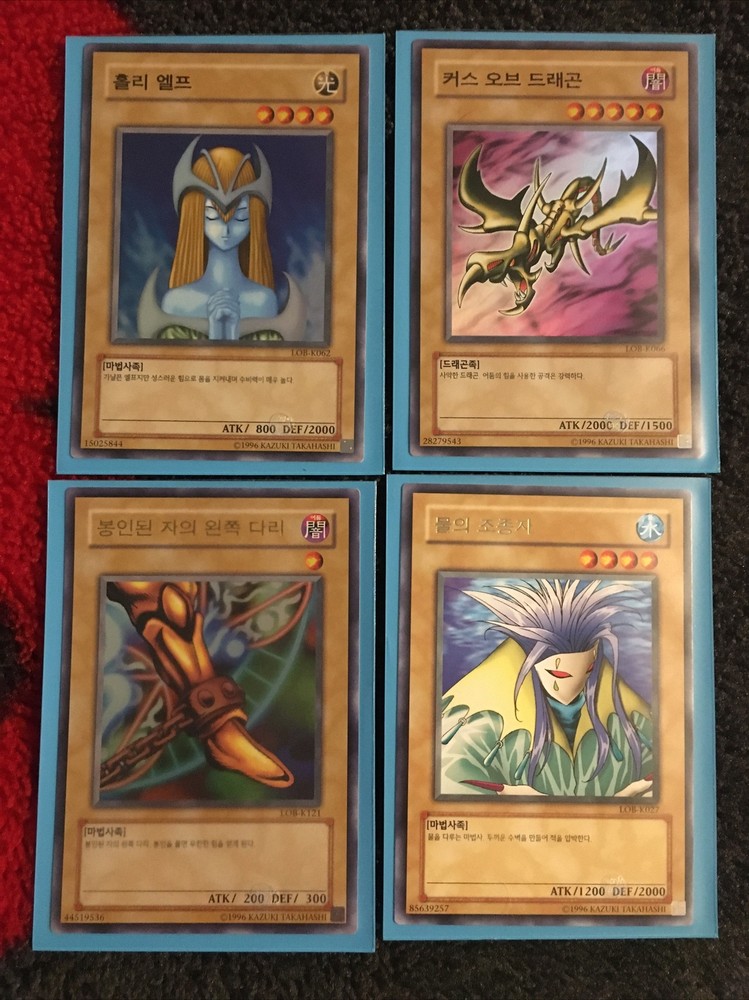Yugioh legend of the blue eyes (Lob) korean (k). (Lob-k???) 19 card mixed holo lot. All cards were pulled from packs and immediately into blue card sleeves. Ready to send to psa! Please see pics for condition, what you see is what you get. Card list by #: Lob-k121 exodia leg lob-k066 Lob-k062 Lob-k059 Lob-k086 Lob-k102 Lob-k107 Lob-k071 Lob-k027 Lob-k057 Lob-k106 Lob-k078 Lob-k100 Lob-k119 Lob-k029 Lob-k110 Lob-k019 Lob-k015 Lob-k022 If you have any questions please send a message!