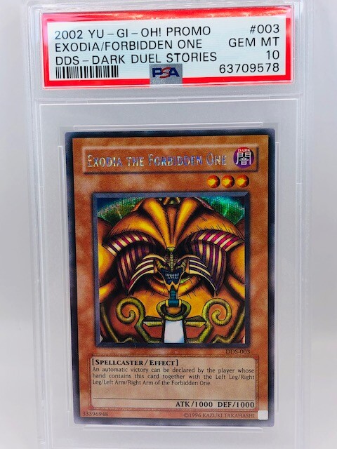 Rarity Secret Rare Description R eleased as a promo in the first print run of the Dark Duel Stories Game Boy game, this version of Exodia the Forbidden One features the original artwork used by Kaiba in both the TV show as well as well as the manga. Printed as a simply stunning prismatic secret rare, this version of the Exodia the Forbidden one is one of the more beautiful Yu-Gi-Oh! cards ever printed. Exodia the Forbidden One - DDS-003 - Secret Rare is a Yugioh Promo Card (no edition) card from the Yu-Gi-Oh! Promo Cards Yugioh set. This is a Secret Rare. Yugioh began back in the mid 90's as a weekly short in Shonen Jump by 1999 the TCG game had launched in Japan. Yugioh has gone on to become one of the top card games in the world and has now surpassed 20 years of competitive play worldwide.