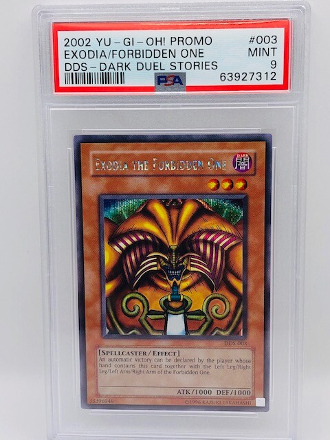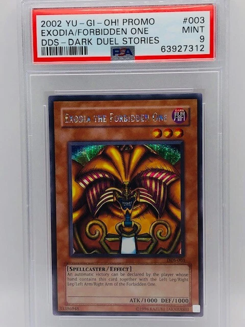 Rarity Secret Rare Description R eleased as a promo in the first print run of the Dark Duel Stories Game Boy game, this version of Exodia the Forbidden One features the original artwork used by Kaiba in both the TV show as well as well as the manga. Printed as a simply stunning prismatic secret rare, this version of the Exodia the Forbidden one is one of the more beautiful Yu-Gi-Oh! cards ever printed. Exodia the Forbidden One - DDS-003 - Secret Rare is a Yugioh Promo Card (no edition) card from the Yu-Gi-Oh! Promo Cards Yugioh set. This is a Secret Rare. Yugioh began back in the mid 90's as a weekly short in Shonen Jump by 1999 the TCG game had launched in Japan. Yugioh has gone on to become one of the top card games in the world and has now surpassed 20 years of competitive play worldwide.
