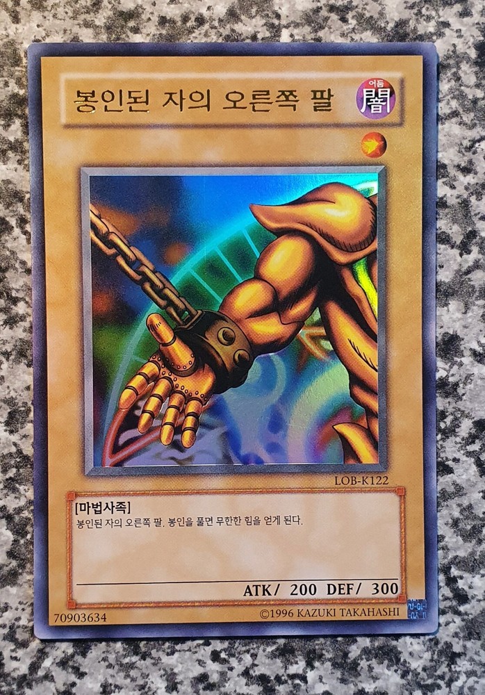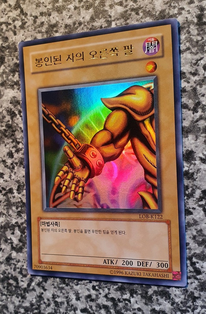 Right Arm of the Forbidden One LOB-K122 Ultra Rare Legend of Blue Eyes White Dragon 2003 Condition: see original pictures Thank you for your support!!! Thank you for your support!!!