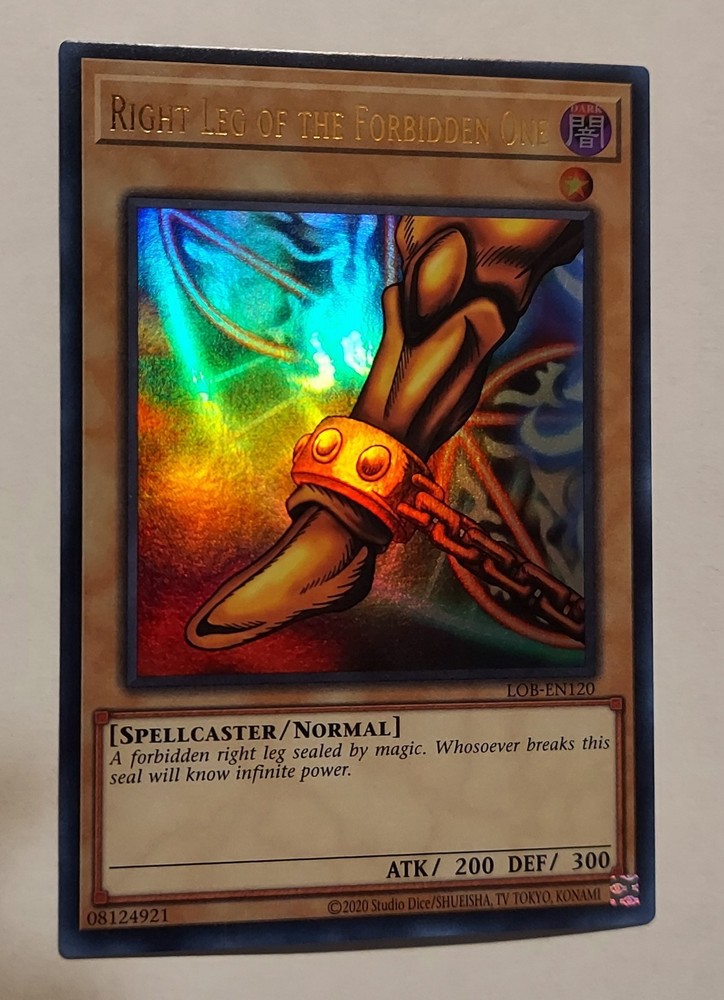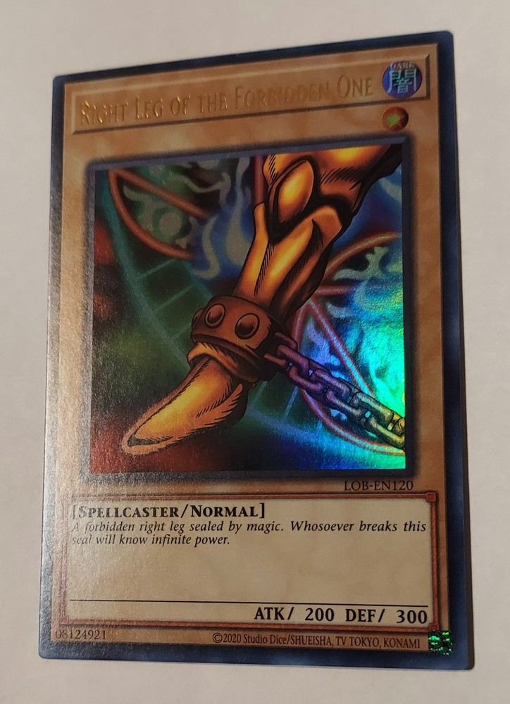 Yugioh Right Leg of the Forbidden One LOB-EN120 Exodia Ultra Rare Unlimited . Condition is Ungraded. Shipped with USPS Ground Advantage.