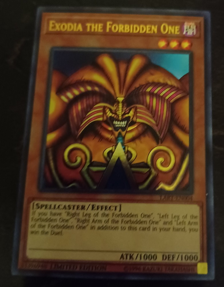 | Card Text | If you have "Right Leg of the Forbidden One", "Left Leg of the Forbidden One", "Right Arm of the Forbidden One" and "Left Arm of the Forbidden One" in addition to this card in your hand, you win the Duel. |