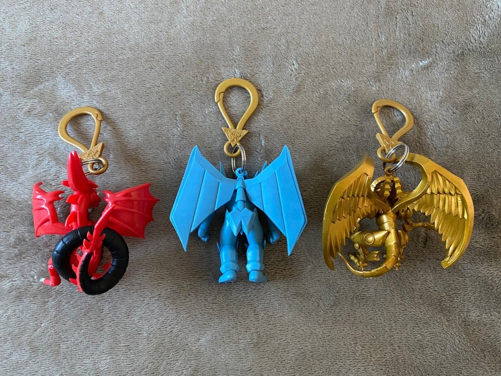 Yugioh Set of 3 Egyptian Gods Bag Clip Figural Keychain Winged Dragon of Ra x1 Slifer the Sky Dragon x1 Obelisk the Tormentor x1 Will ship securely with bubble wrap. Shipped with USPS. Thank you :D!