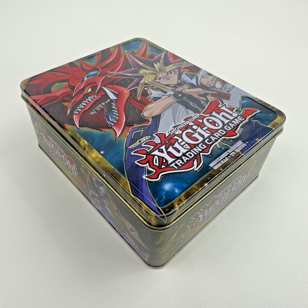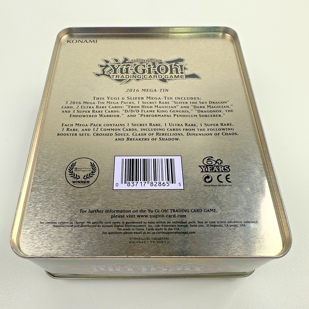 The Yu-Gi-Oh! Slifer The Sky Dragon 2016 Mega Tin is a collectible card game accessory featuring the iconic character Slifer. This multicolor tin, manufactured in 2016, is designed for storing and organizing Yu-Gi-Oh! trading cards. Perfect for fans of the Yu-Gi-Oh! TCG and collectors of CCG supplies, this empty tin from the MEGA brand is a must-have for any Yu-Gi-Oh! enthusiast.