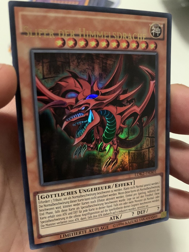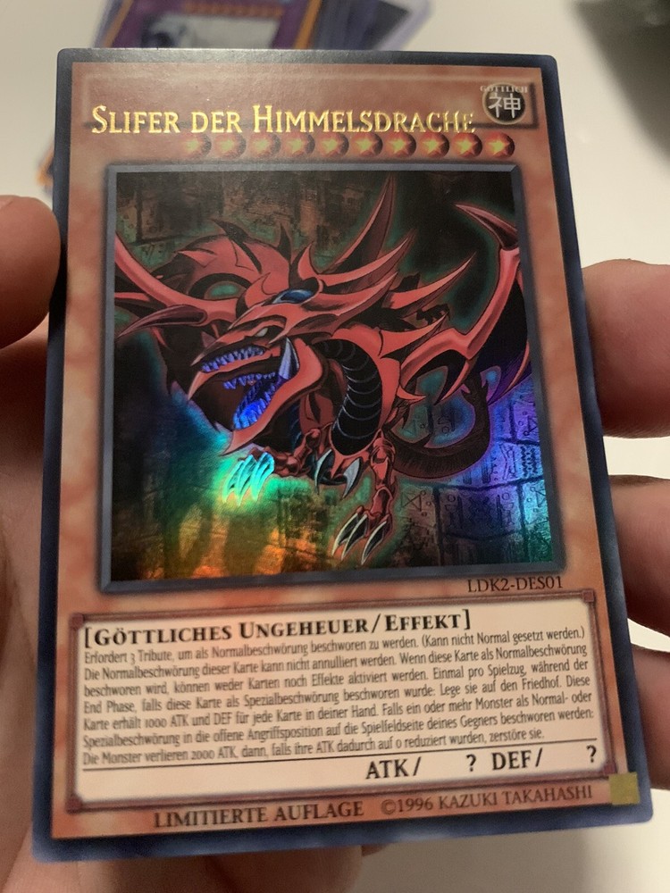 You are offering for the following Card: Slifer The Sky Dragon Ldk-des01 Ultra Rare German Language Near mint condition Misprint name shift see Photo I ship from Germany.Shipping can be take because of Pandemie more as a Month to the USA I ship it in a bubble envelope and top loader and with Tracking number Happy bidding