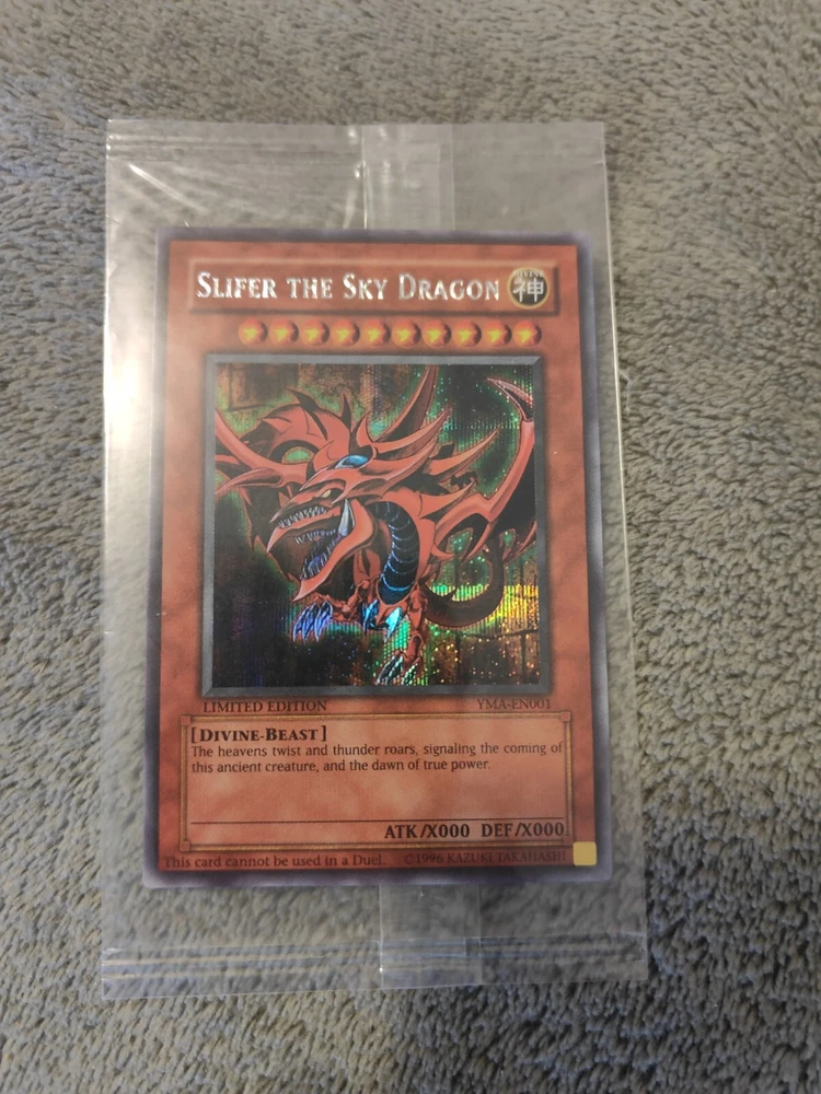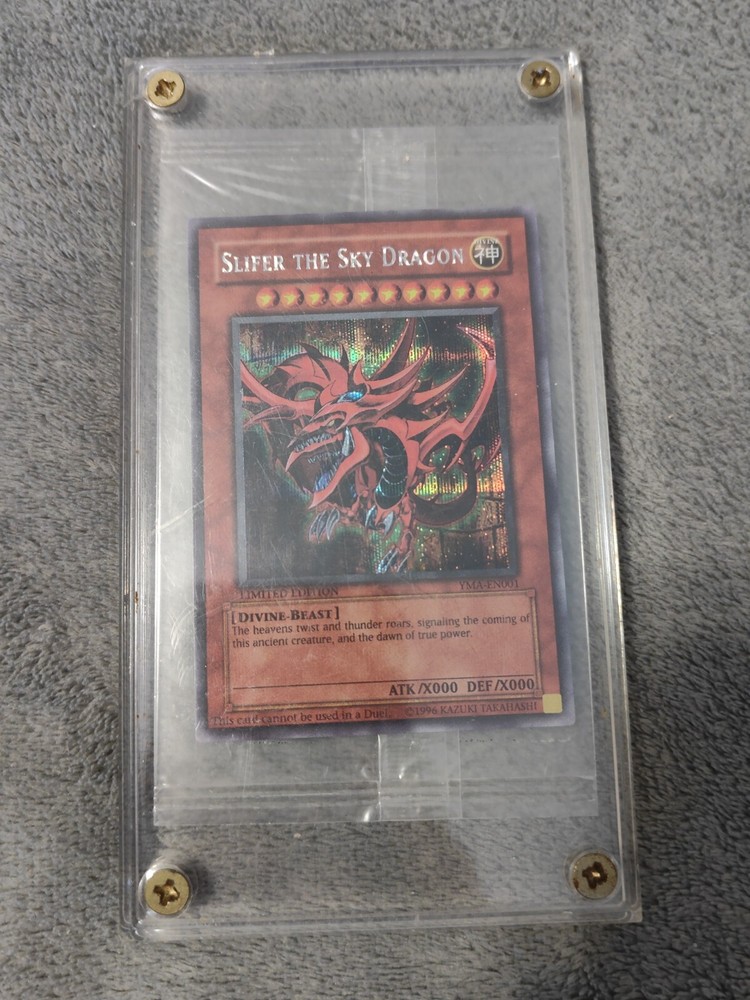 You are bidding/buying Yugioh Slifer The Sky Dragon YMA-EN001 Ani-Manga Promo SEALED M/NM x1 (This card was hand acquired by me and is in absolutely amazing shape. Most copies of this card are opened and sold in bad condition so now's your chance to own a piece of Yugioh history! Because this is an expensive card, as soon as I got it I put it into a clear case shown with screws. It will require a Phillips screw driver to open and isn't hard to open whatsoever, but I highly recommend either getting this card graded or keeping it in the clear case. The case itself has scratches as seen in the pictures but the card is absolutely flawless and unopened.) Because this is an expensive card, it will be insured, shipped extremely carefully as well as require a signature to obtain it.) If you win an auction please pay for the item within 1-2 days otherwise I will cancel your order. If a card says x1 you are only receiving one copy of the cards shown in pictures. I show all copies I have available to customers can see the condition of each one. If you have any questions or concerns or would like more pictures please feel free to message me!