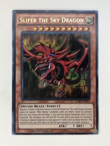 Elevate your Yu-Gi-Oh! TCG collection with the legendary Slifer the Sky Dragon from Yugi's Legendary Decks. Card number LDK2-ENS01 boasts an Ultra Rare status, featuring a stunning Holo finish that captures the divine essence of this Egyptian God card. With its attributes reflecting Slifer's powerful divine nature, this piece is a must-have for both collectors and duelists aiming to bolster their deck with a creature of mythic proportions. Crafted by Konami and presented in English, this card aligns with the Japanese card size standard, ensuring a seamless fit into your existing collection. While not vintage, it does carry the prestige of a Limited Edition, adding a unique touch to its rarity. Slifer the Sky Dragon embodies the timeless appeal and strategic advantage of the Divine-Beast type, making it a formidable addition to any game.