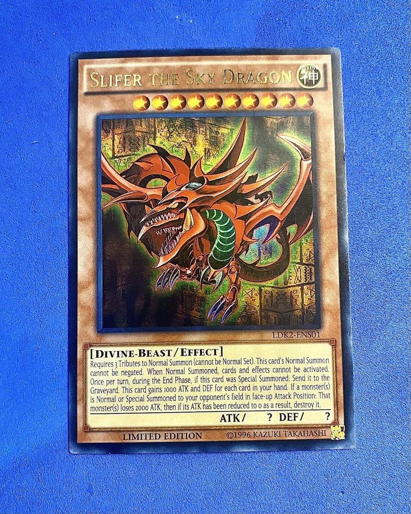 Elevate your Yu-Gi-Oh! TCG collection with the legendary Slifer the Sky Dragon card, a must-have for any duelist seeking to bolster their deck with powerful Egyptains. This LDK2-ENS01 card boasts the prestige of a 10000 Secret Rare classification, ensuring its status as a standout piece. It features a striking foil finish that captures the essence of this timeless creature, making it a dazzling addition to any collection. With its Basic stage classification and Angel creature type, Slifer is ready to make a significant impact in your next battle. The card comes in English language, adhering to the Japanese card size standard, and is suitable for ages 4 and up. Celebrate the rich history of the Yu-Gi-Oh! universe with this vintage 1990 release, a true gem from the 2006 set.