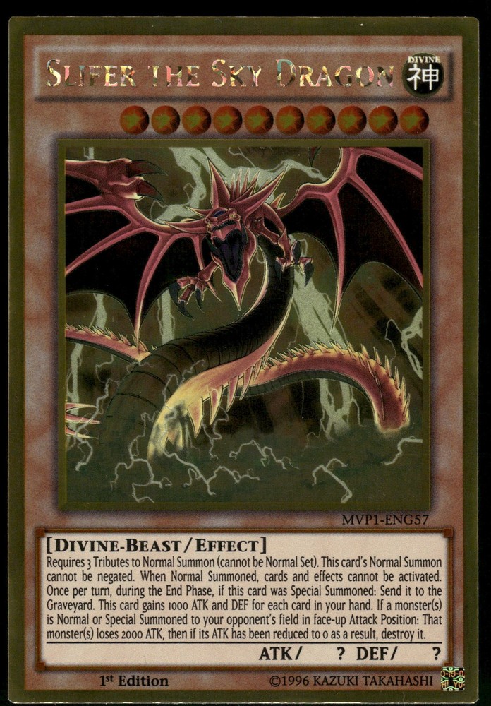 Slifer the Sky Dragon MVP1-ENG57 Yugioh! The Dark Side of Dimensions Movie Pack: Gold Edition Gold Rare Yugioh! TCG. If multiple cards are listed, you may not receive the exact one in the photos. All copies are in the same condition. Condition is as shown. Please feel free ask if you'd like to see more photos! All card orders packaged with care using a penny sleeve, top loader and a team bag. Singles up to $20 will be shipped in a PWE, $20+ will be shipped in a Bubble Mailer, anything fragile/sealed (depending on the product) will be shipped in a box. All orders are shipped out within 24 hours.
