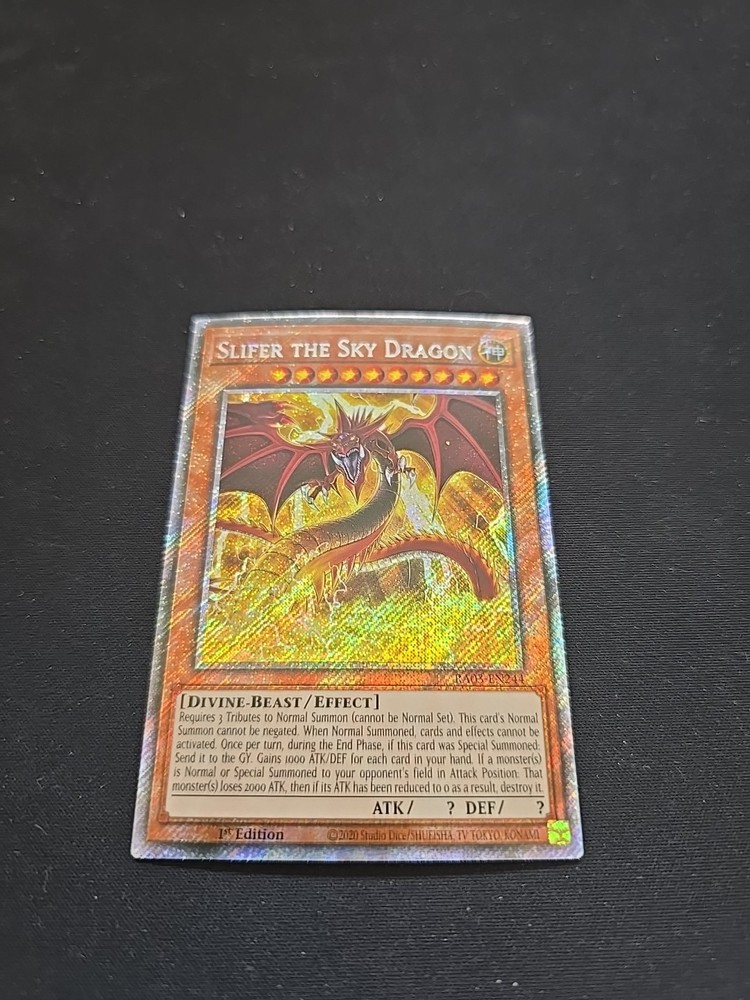 Yugioh! Slifer the Sky Dragon - RA03-EN244 - Platinum Secret Rare - 1st. Condition is Ungraded. Shipped with Canada Post Lettermail.