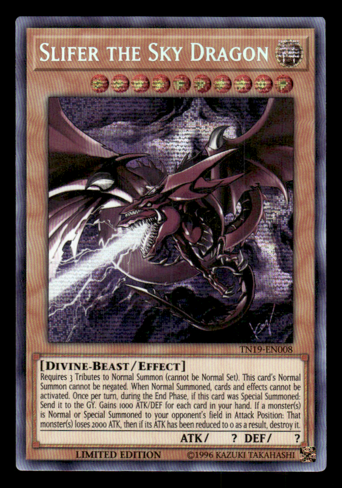 Yugioh! Slifer the Sky Dragon (alternate art) - TN19-EN008 - Prismatic Secret NM $ 1.58 y... Flower Bowl quantity Add To Cart Description Specifics Description y Specifics Features 1st Edition Game Yu-Gi-Oh! TCG Manufacturer Konami