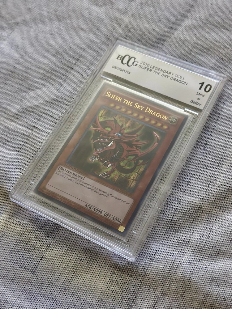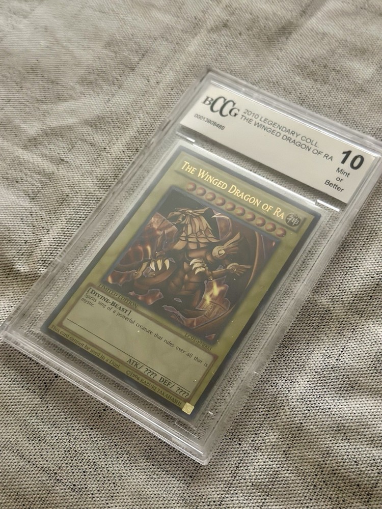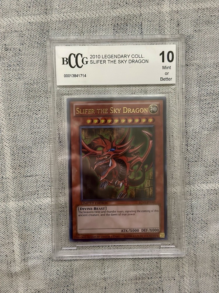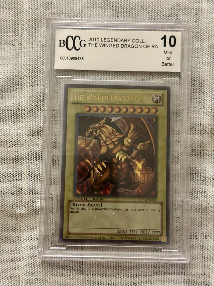 Beckett graded 10! 3 card lot 2010 legendary collection -Slifer The Sky Dragon (LC01-EN002) -The Winged Dragon of Ra (LC01-EN003) -Red Eyes B. Dragon (LC01-EN006) All slabs in excellent condition...