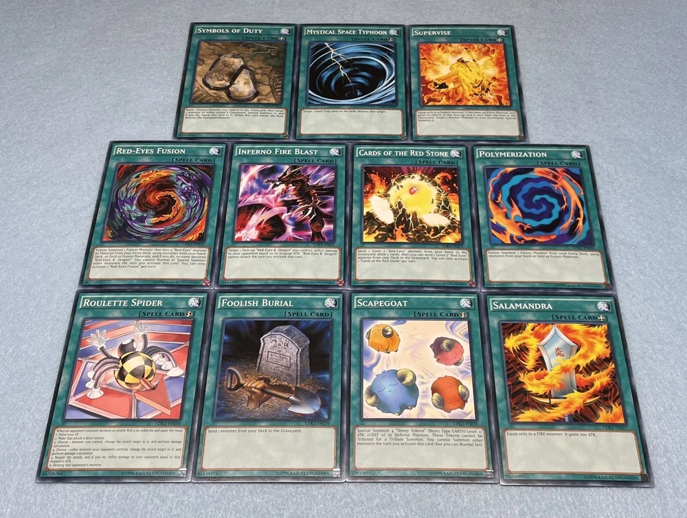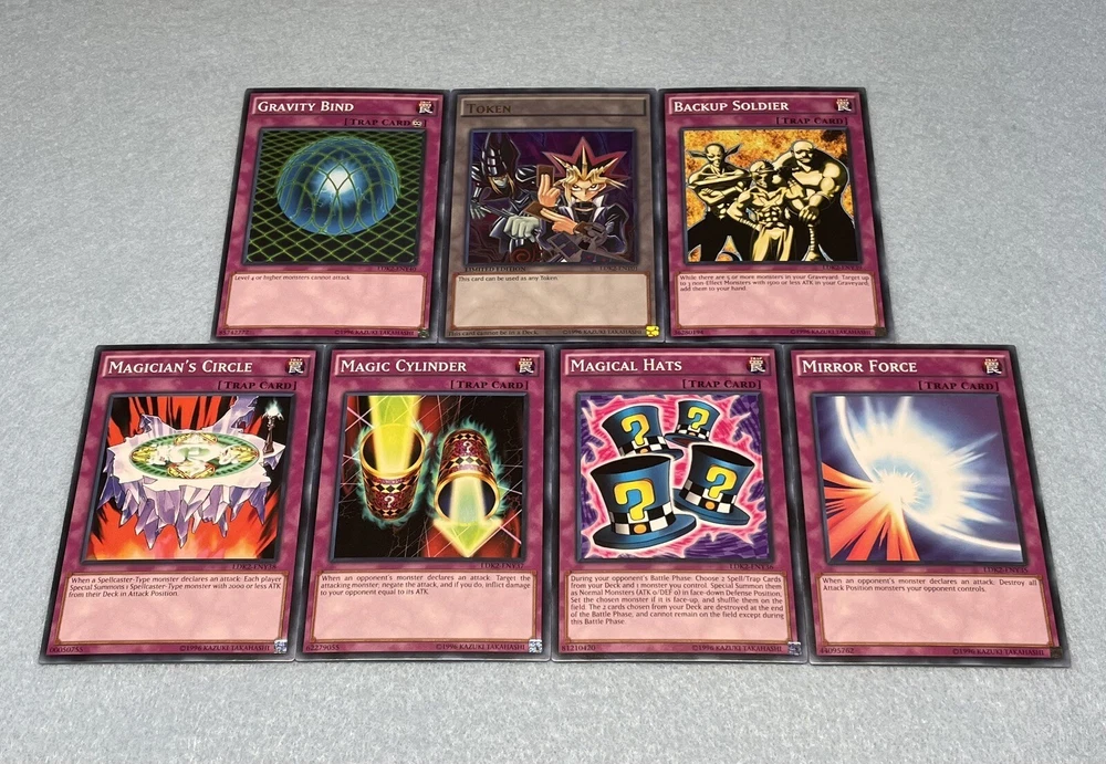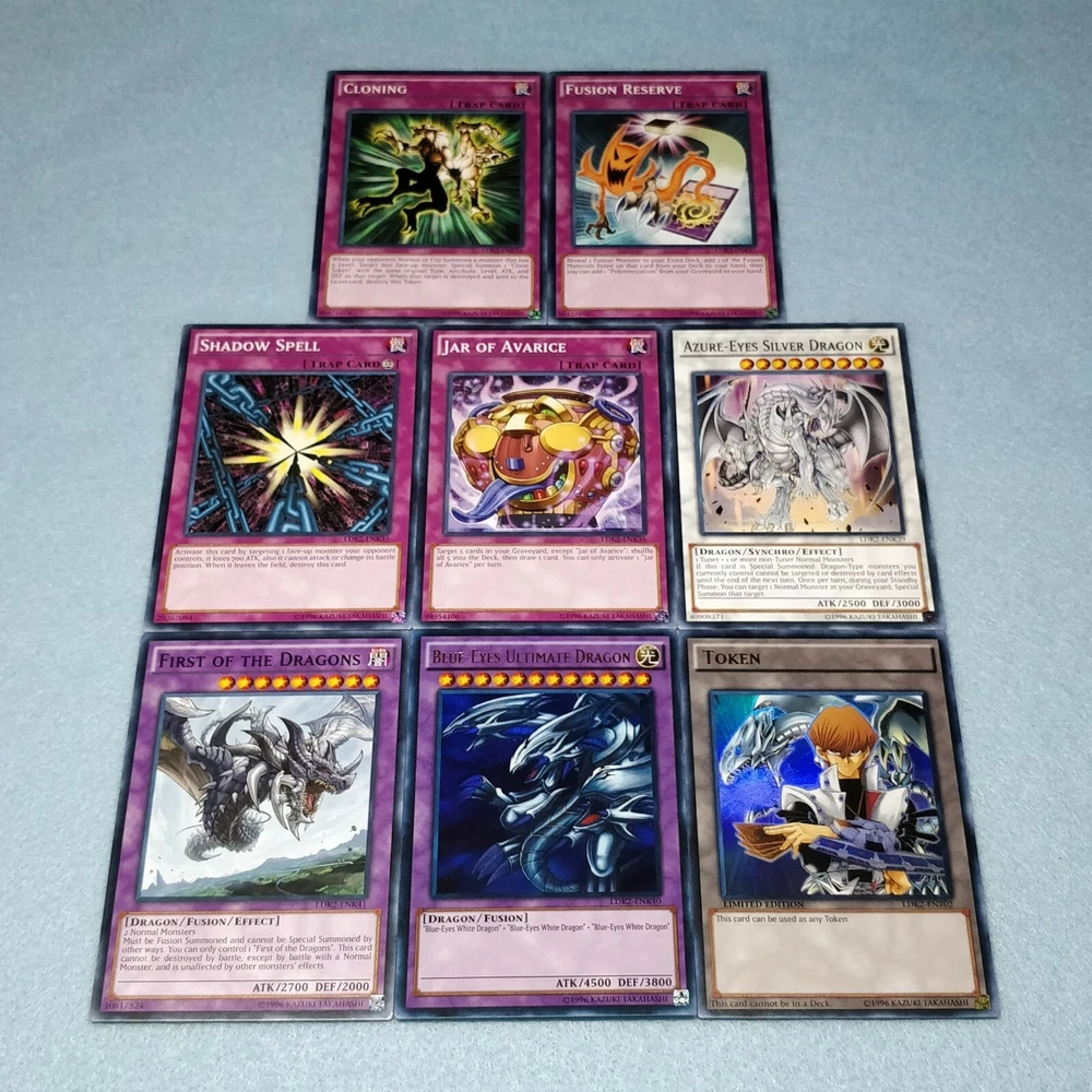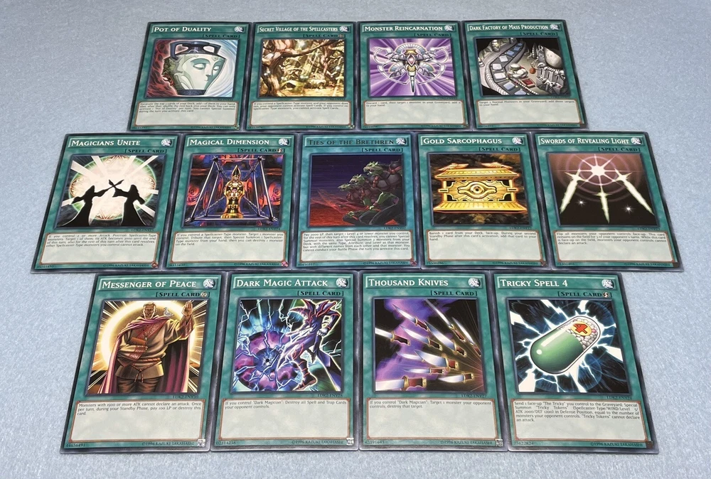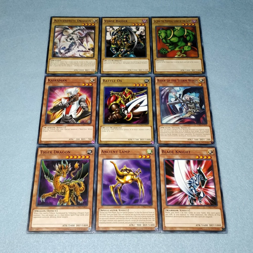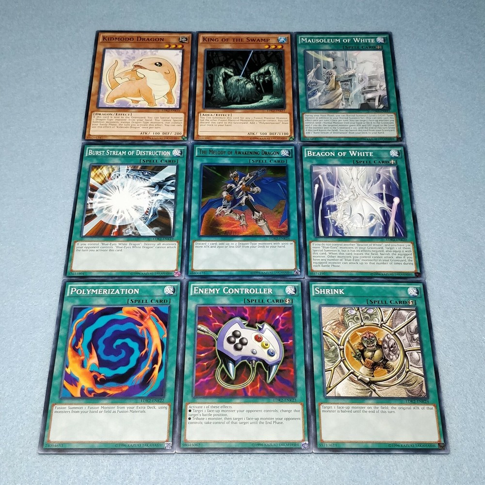 Includes some of the most iconic cards used by the three main protagonists of Yu-Gi-Oh Duel Monsters. You will receive the following cards: Yami Yugi's Exodia Deck: 1x Slifer the Sky Dragon (Ultra Rare) 1x Obelisk the Tormentor (Ultra Rare) 1x The Winged Dragon of Ra (Ultra Rare) 1x The Legendary Exodia Incarnate (Ultra Rare) 1x Ties of the Brethren (Ultra Rare) 1x Obliterate!!! (Ultra Rare) 1x Exodia the Forbidden One 1x Right Arm of the Forbidden One 1x Left Arm of the Forbidden One 1x Right Leg of the Forbidden One 1x Left Leg of the Forbidden One 1x Exodia Necross 1x Dark Magician 1x Dark Magician Girl 1x Buster Blader 1x Silent Magician LV8 1x Silent Magician LV4 1x The Tricky 1x Big Shield Gardna 1x Magician's Valkyria 1x Blast Magician 1x Blockman 1x Marshmallon 1x Sangan 1x Gold Sarcophagus 1x Swords of Revealing Light 1x Magical Dimension 1x Magicians Unite 1x Tricky Spell 4 1x Thousand Knives 1x Dark Magic Attack 1x Contract with Exodia 1x Messenger of Peace 1x Dark Factory of Mass Production 1x Monster Reincarnation 1x Secret Village of the Spellcasters 1x Pot of Duality 1x Mirror Force 1x Magical Hats 1x Magic Cylinder 1x Magician's Circle 1x Backup Soldier 1x Gravity Bind 1x Token (Ultra Rare) Seto Kaiba's Blue Eyes Deck: 3x Blue-Eyes White Dragon 1x Dragon Spirit of White 1x Kaibaman 1x The White Stone of Legend 1x The White Stone of Ancients 1x Maiden with Eyes of Blue (Ultra Rare) 1x Protector with Eyes of Blue 1x Master with Eyes of Blue 1x Battle Ox 1x La Jinn the Mystical Genie of the Lamp 1x Vorse Raider 1x Alexandrite Dragon 1x Blade Knight 1x Ancient Lamp 1x Tiger Dragon 1x Kidmodo Dragon 1x King of the Swamp 1x Rider of the Storm Winds 1x Burst Stream of Destruction 1x Beacon of White 1x Mausoleum of White 1x Polymerization 1x Enemy Controller 1x Shrink 1x Silent Doom 1x The Melody of Awakening Dragon (Ultra Rare) 1x Ancient Rules 1x Trade-In 1x Where Arf Thou? 1x Pot of Dichotomy 1x Fusion Substitute 1x Unexpected Dai 1x Negate Attack 1x Final Attack Orders 1x Shadow Spell 1x Cloning 1x Fusion Reserve 1x Jar of Avarice 1x Azure-Eyes Silver Dragon 1x Blue-Eyes Ultimate Dragon (Ultra Rare) 1x First of the Dragons 1x Token (Ultra Rare) Joey Wheeler's Red Eyes Deck: 1x Red-Eyes Black Dragon 1x Red-Eyes Black Flare Dragon 1x Red-Eyes Archfiend of Lightning 1x Red-Eyes Retro Dragon 1x The Black Stone of Legend (Ultra Rare) 1x Black Metal Dragon 1x Axe Raider 1x Alligator's Sword 1x Baby Dragon 1x Jinzo 1x Goblin Attack Force 1x Gearfried the Iron Knight 1x Rocket Warrior 1x Blue Flame Swordsman 1x Time Wizard 1x Phoenix Gearfried 1x Gemini Summoner 1x Blazewing Butterfly 1x Dark Valkyria 1x Command Knight 1x Valkyrian Knight 1x Keeper of the Shrine 1x Inferno Fire Blast 1x Red-Eyes Fusion 1x Cards of the Red Stone 1x Polymerization 1x Salamandra 1x Scapegoat 1x Foolish Burial 1x Roulette Spider 1x Supervise 1x Mystical Space Typhoon 1x Symbols of Duty 1x Return of the Red-Eyes (Ultra Rare) 1x Red-Eyes Spirit 1x Kunai with Chain 1x Call of the Haunted 1x Torrential Tribute 1x Burst Breath 1x Curse of Anubis 1x Red-Eyes Flare Metal Dragon (Ultra Rare) 1x Archfiend Black Skull Dragon 1x Alligator's Sword Dragon 1x Token (Ultra Rare) All cards are in near-mint condition.