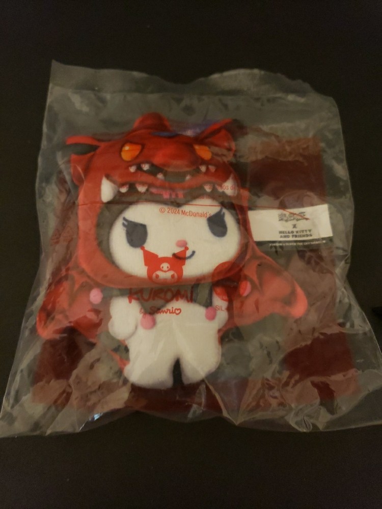 Embrace the fusion of pop culture with this charming Yugioh x Hello Kitty Sanrio plush toy, featuring the iconic Kuromi character alongside Slifer the Sky Dragon. This unique collectible, crafted from soft plush material, is a must-have for fans of the beloved Hello Kitty franchise and the strategic world of Yu-Gi-Oh! animation. Dressed in a vibrant red color that stands out with Hello Kitty's classic charm, this plush toy is a delightful celebration of two beloved universes. Designed with English language details, it's perfect for collectors and enthusiasts looking to add a touch of anime and manga flair to their collection.