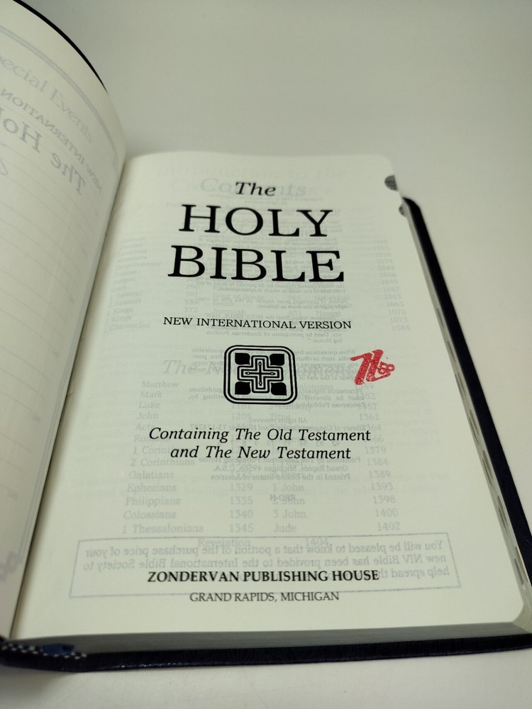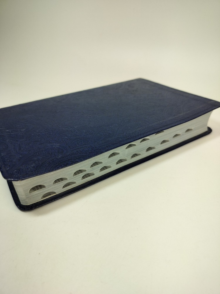 Zondervan Rare 1992 Limited Edition Index Red Letter Reference Bible Bonded Leather Embossed Paisley Navy Blue Pre Owned Item Excellent Condition Please See Photos