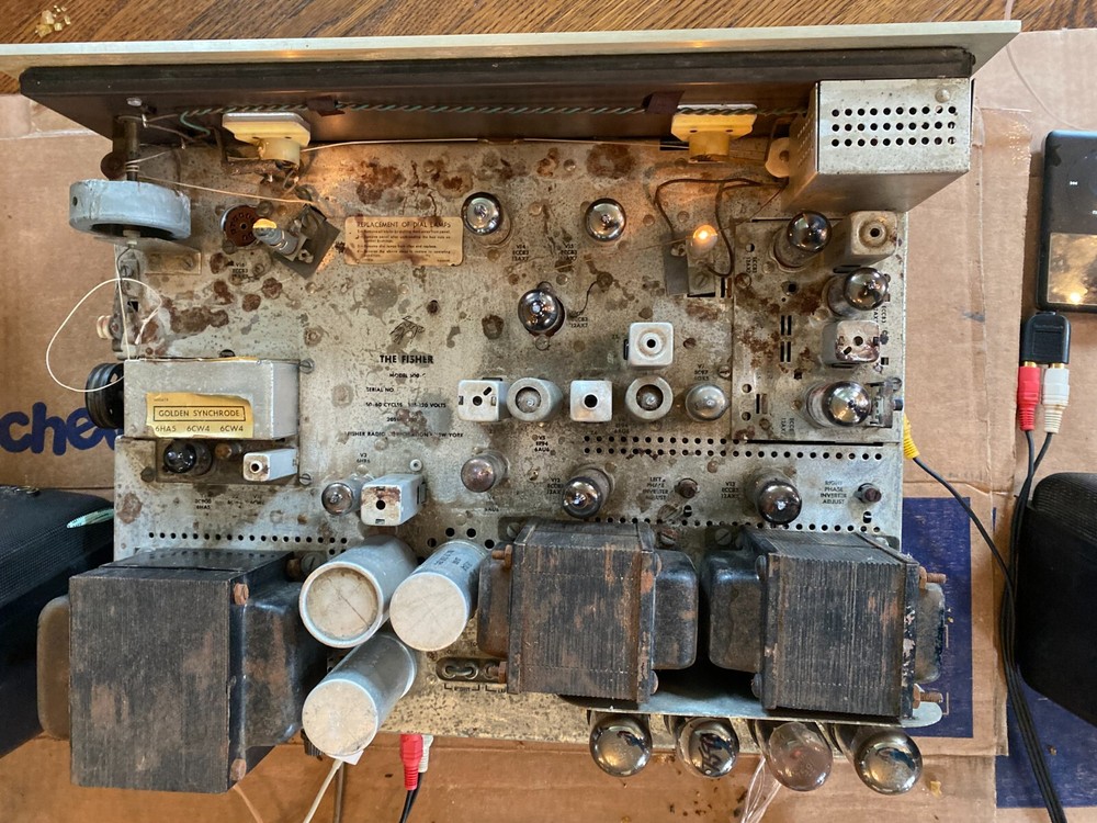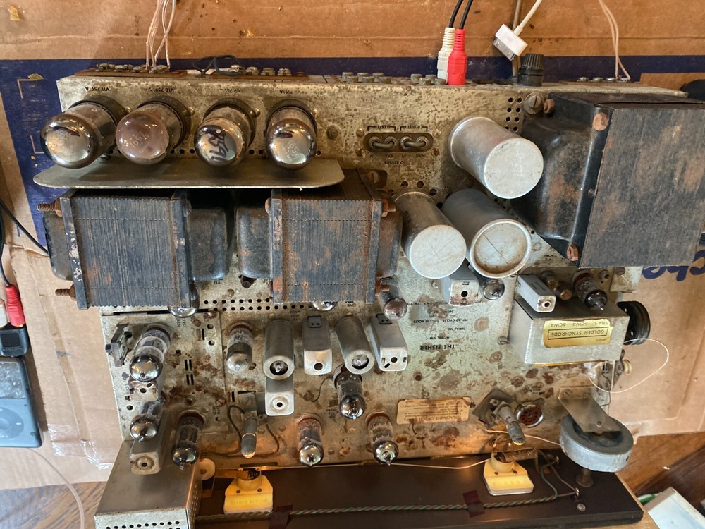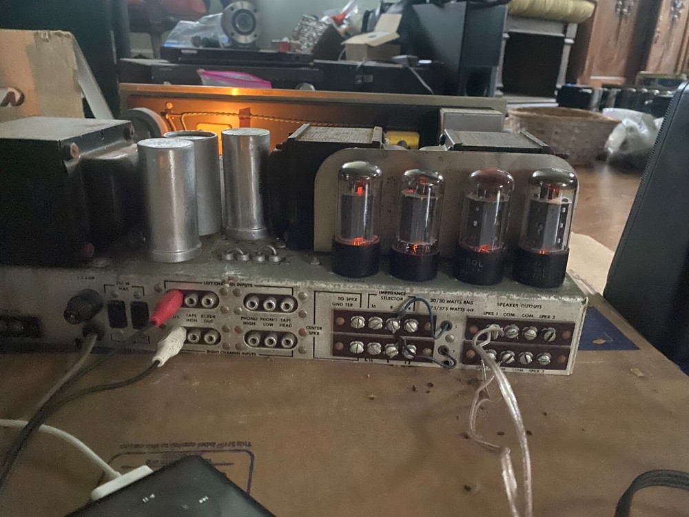 Unit has minor pittings and dust which should clean up 1. Video shows receiver in working condition. It is intended to show working power and output transformers, which are most important to a vacuum tube amplifier 2. 7591 Power tubes NOT included, only used for video demo purposes 3. Equipment is over 50 years old so it will likely need to be gone over by qualified technicians but fundamentally the receiver works as video shows. We will assist over email with troubleshooting / guidances but we do not warranty or guarantee anything since it is vintage and over 50 years old 4. Only tested Aux inputs using Ipod (shown in Video) 5. Radio/tuner works but string broke (2nd half of video when switched from Bob Marly Ipod. Little spring will be sent along for buyer to restring tuner knob. 6. All sales are final. NO return, NO refund Ship to lower 48 states