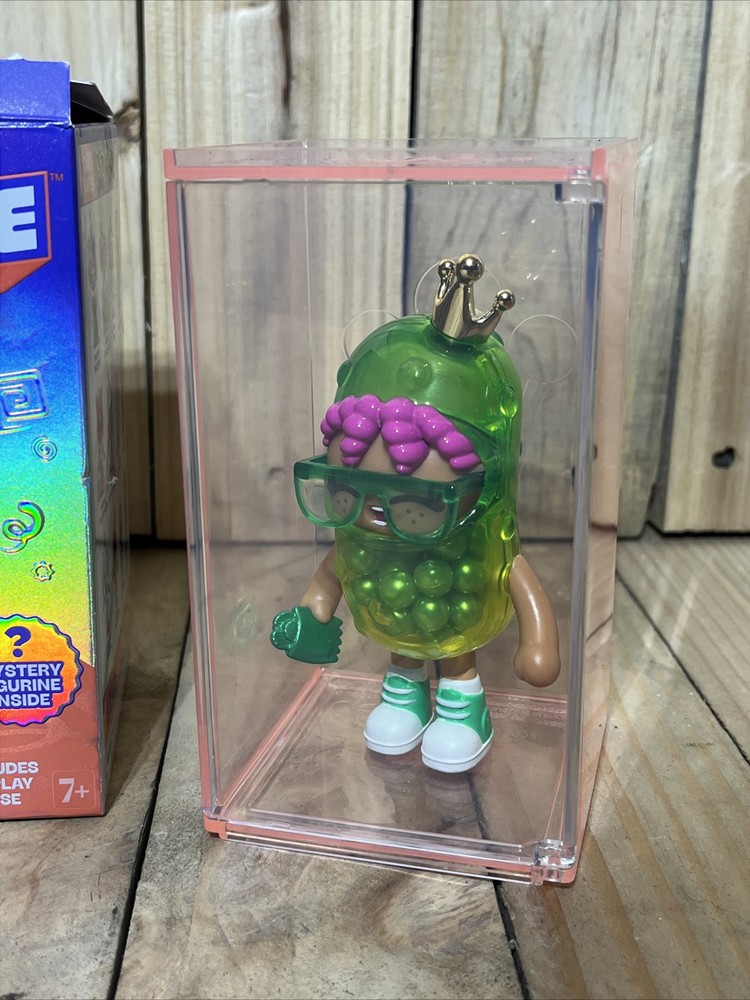 Two XOX kweenie figures, pink Godzilla and Kween of Pickles with display boxes, and original quirky kweens mystery figure box (opened)....