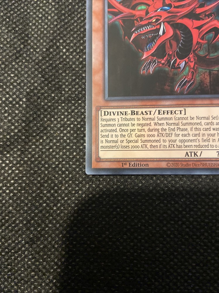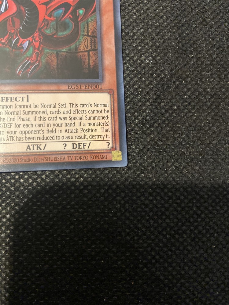 This listing is for 1x Yu Gi Oh Slifer the Sky Dragon EGS1 EN001 card in NM/M condition This card will be sent out in a penny sleeve and a top loader to increase protection from any potential damage via shipping. If you have any questions regarding this listing then please feel free to send me a message, also please have a look at my other listings :)